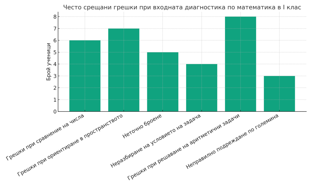 На базата на анализа на резултатите от входната диагностика се откроиха няколко основни групи често срещани грешки: